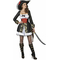 Pirata si, ma elegante e sexy! Questo travestimento da piratessa sexy per adulto comprende un vestito e un cappello (calze, stivali e sciabola non inclusi). Il vestito è corto e avvitato, con gonna a palloncino. La parte superiore è a maniche lunghe ed ha una bella scollatura che metterà in risalto il tuo decolleté. L'estremità delle maniche e la parte centrale della gonna sono decorate con inserti di tessuto damascato dorato. Le parti nere sono in feltro nero, mentre quelle bianche in tessuto tipo raso. Sotto la gonna è presente una fodera bianca adornata di pizzo nero. Ti consigliamo: per aggiungere volume alla tua gonna, aggiungi una sottogonna supplementare (venduta separatamente). Il cappello è indicato per una circonferenza cranica di circa 60 cm. esso è fatto in spugna leggera e conserverà bene la sua tipica forma a tricorno. Questo elegante costume da corsaro per donna sarà perfetto a carnevale o per una festa a tema Pirati. Include: Vestito Cappello Materiale: 100 % Poliestere Manutenzione: Lavaggio a mano Misure: Taglia S: il vestito è lungo circa 85 cm.